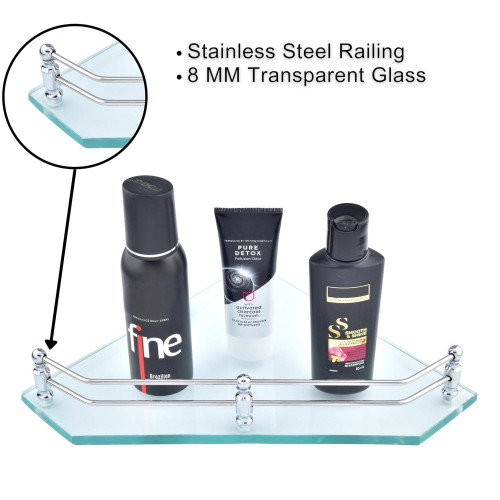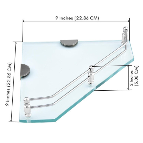 Motiqo Diamond Transparent Glass Corner Shelf for Bathroom,Shelf for Wall, Racks and Shelves, Kitchen Corner Shelf, Bathroom Organiser and Accessories (9x9 Inches,Set-1)