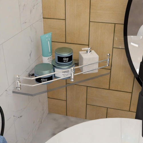 Modern Glass Design: Enhance your bathroom's aesthetic appeal with our sleek and contemporary glass corner shelf, adding a touch of sophistication to any space.