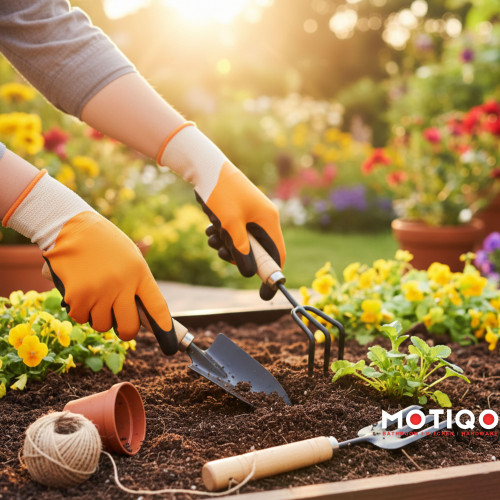 Motiqo Gardening Tool Set 3-Piece – Ergonomic Wooden Handles | Big Hand Trowel, Cultivator & Weeding Fork for Plant Tools | Ideal for Terrace, Balcony | Outdoor Living Terrace Gardening Kit