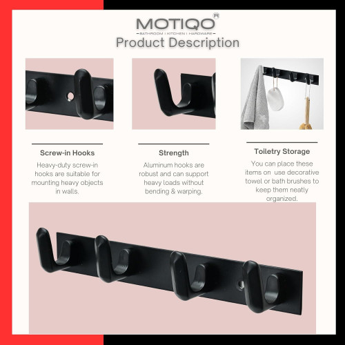 - Rust-Proof & Corrosion Resistant: Engineered with high-quality materials and finished with a premium black powder coating, this hook rail is built to withstand steam, humidity, and daily wear.