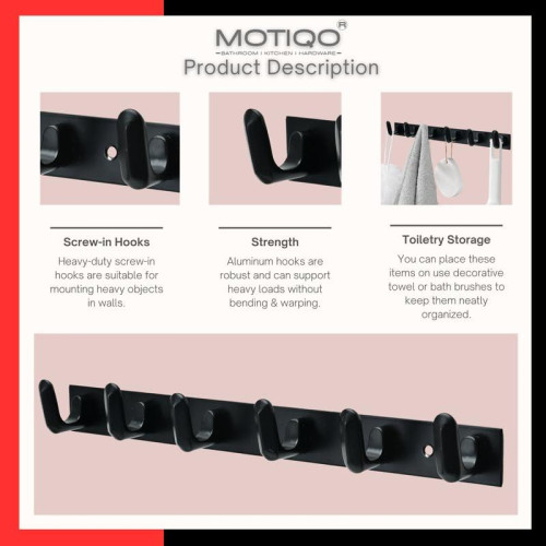 Space-Saving Design: Maximize your bathroom space with this compact yet highly efficient hook rail. Hang towels, robes, or clothing items conveniently, keeping your bathroom tidy and well-organized.