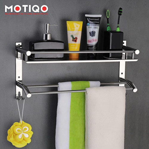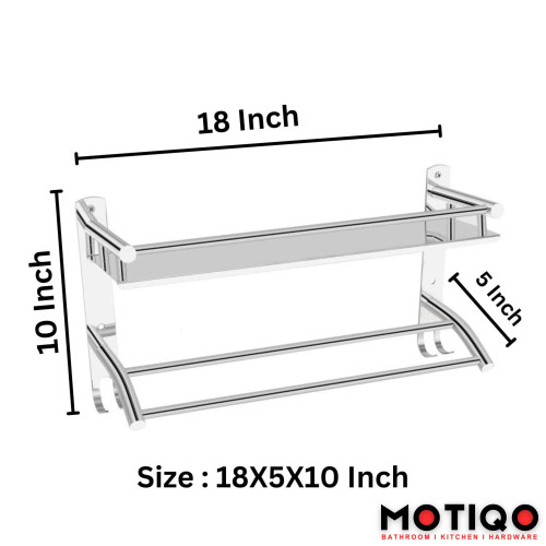 Motiqo Multi-Purpose Stainless Steel Wall Shelf with Towel Bar | Rustproof Bathroom & Kitchen Organizer