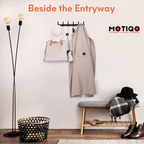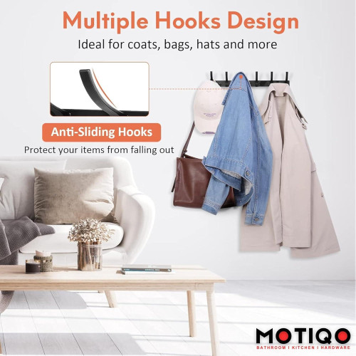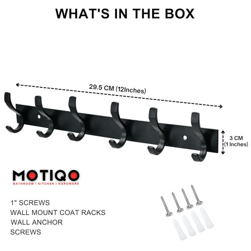 Motiqo S- Shape 6 Pin Cloth Hanger for Wall, Cloth Hooks Hanger, Door Hangers for Clothes, Hooks Rail for Hanging Keys, Clothes (Black- Set-2)