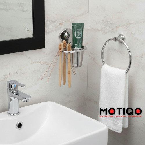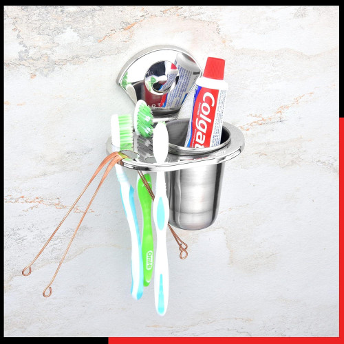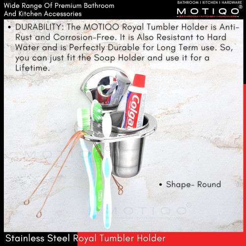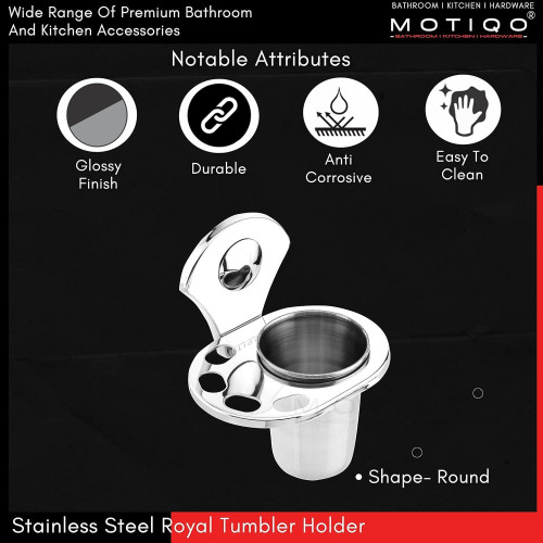 Motiqo Stainless Steel Tumbler Holder, Tooth Brush Holder, Organizer, Bathroom Accessories, Chrome Finish, Wall Mount (Royal, Pack-2)