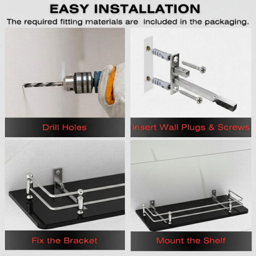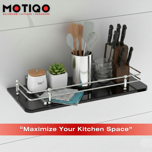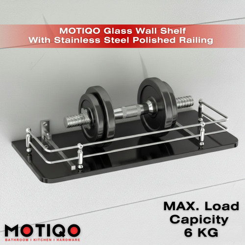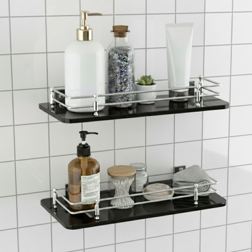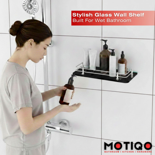 Motiqo Wall Mount Black Glass Shelf for Bathroom Rack, Glass Shelf for Kitchen, Bathroom Shelf for Wall,Bathroom Racks and Shelves, Bathroom Accessories and Organiser [12X6 INCH] Set-2