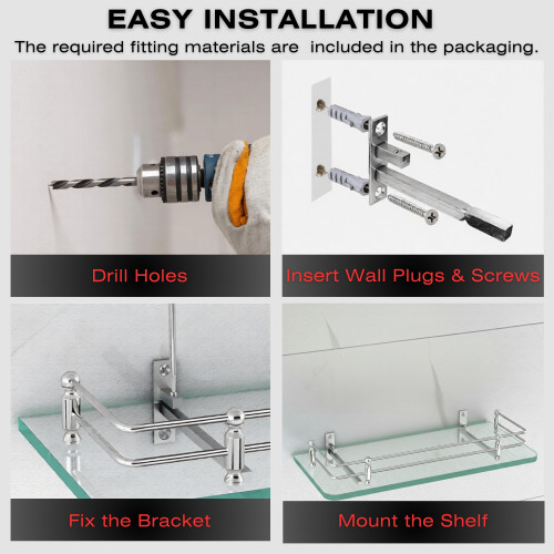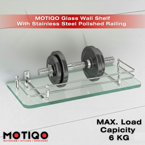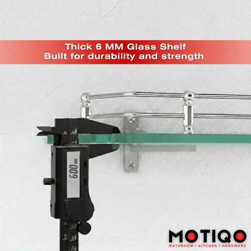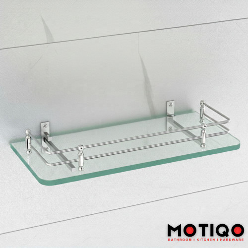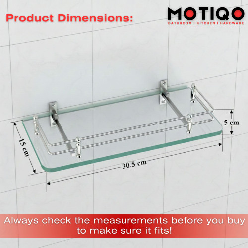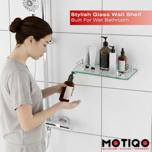 Motiqo Wall Mount Transparant Glass Shelf for Bathroom Rack, Glass Shelf for Kitchen, Bathroom Shelf for Wall,Bathroom Racks and Shelves, Bathroom Accessories and Organiser [12X6 INCH] Set-1