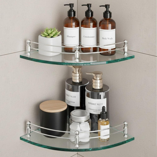 • Durable Construction: This corner shelf is made of premium 6 MM glass that is known for its strength and safety. The glass is resistant to shattering and can hold a significant amount of weight.